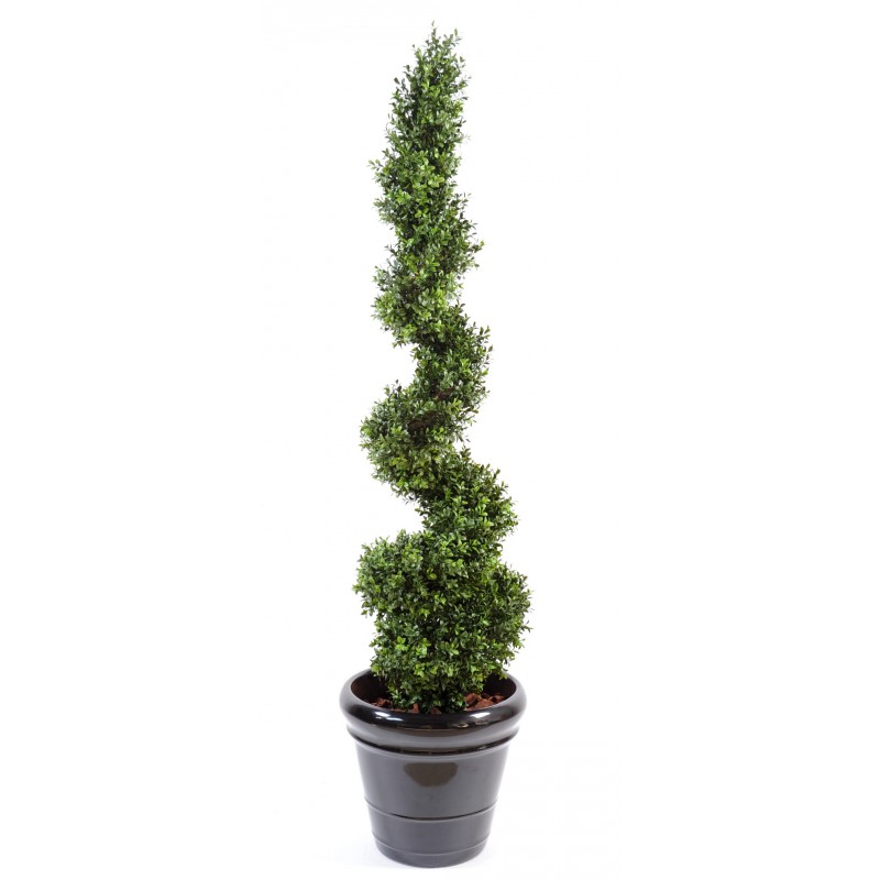 Avec des feuilles en plastique et un tronc en bois, cette reproduction s'inspire du véritable buis en dévoilant un aspect torsadé. Généralement vendu en pot en PVC ou en plastique, il expose des dimensions diverses incluant de petites et grandes tailles. La liste comporte des versions allant de 30 jusqu'à 140 cm de haut. Par conséquent, le prix repose sur la hauteur, la marque et de la qualité du pot. Ce type de buis est parfait pour une décoration d'extérieur dont l'utilisation consiste à embellir les angles du jardin.